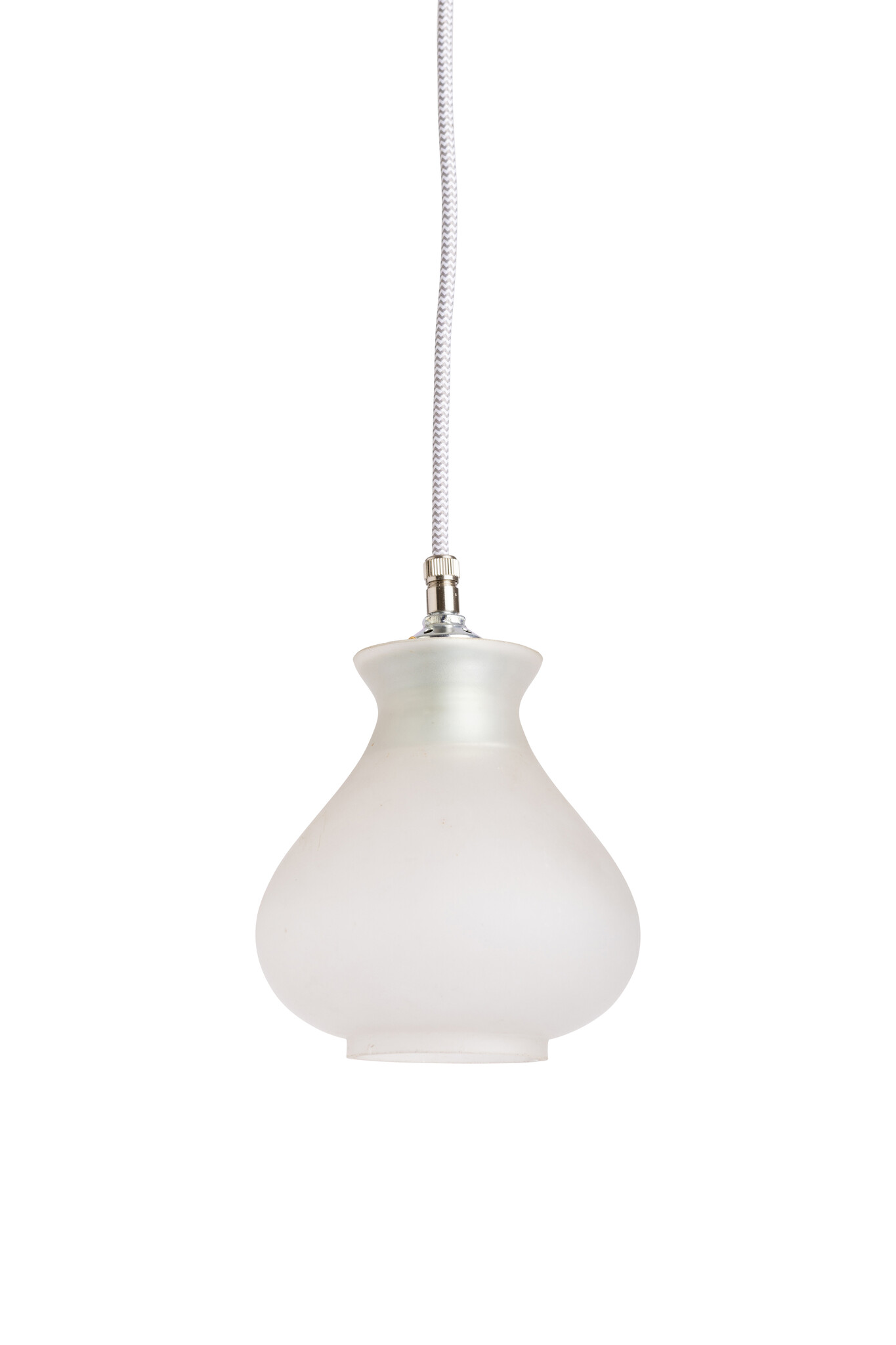 Een matglazen lampenkap, peer-vormig, wel leuk vinden wij.