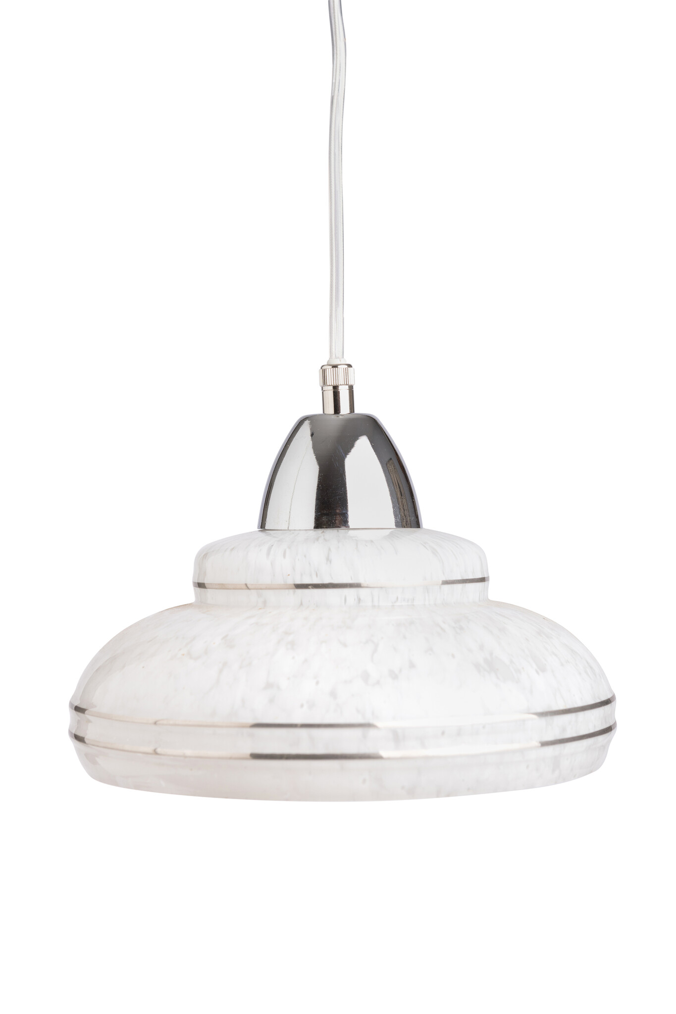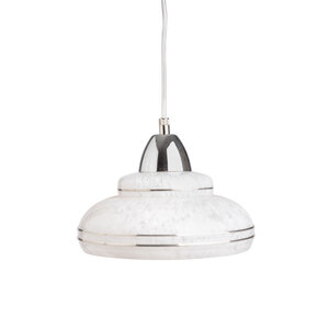 Een wit gewolkt glazen kapje met zilverkleurige biezen.