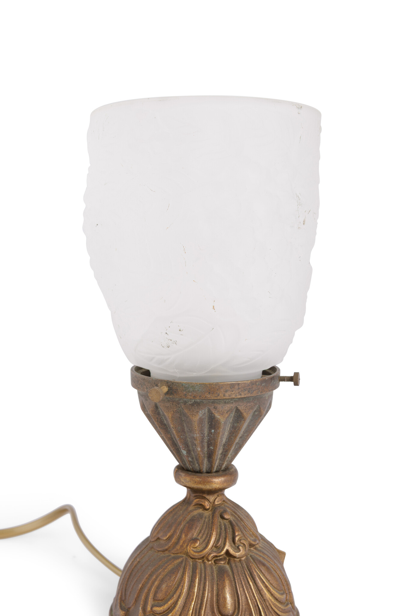 Het heeft een charmante voet van bruin koper met sierlijke vormen.