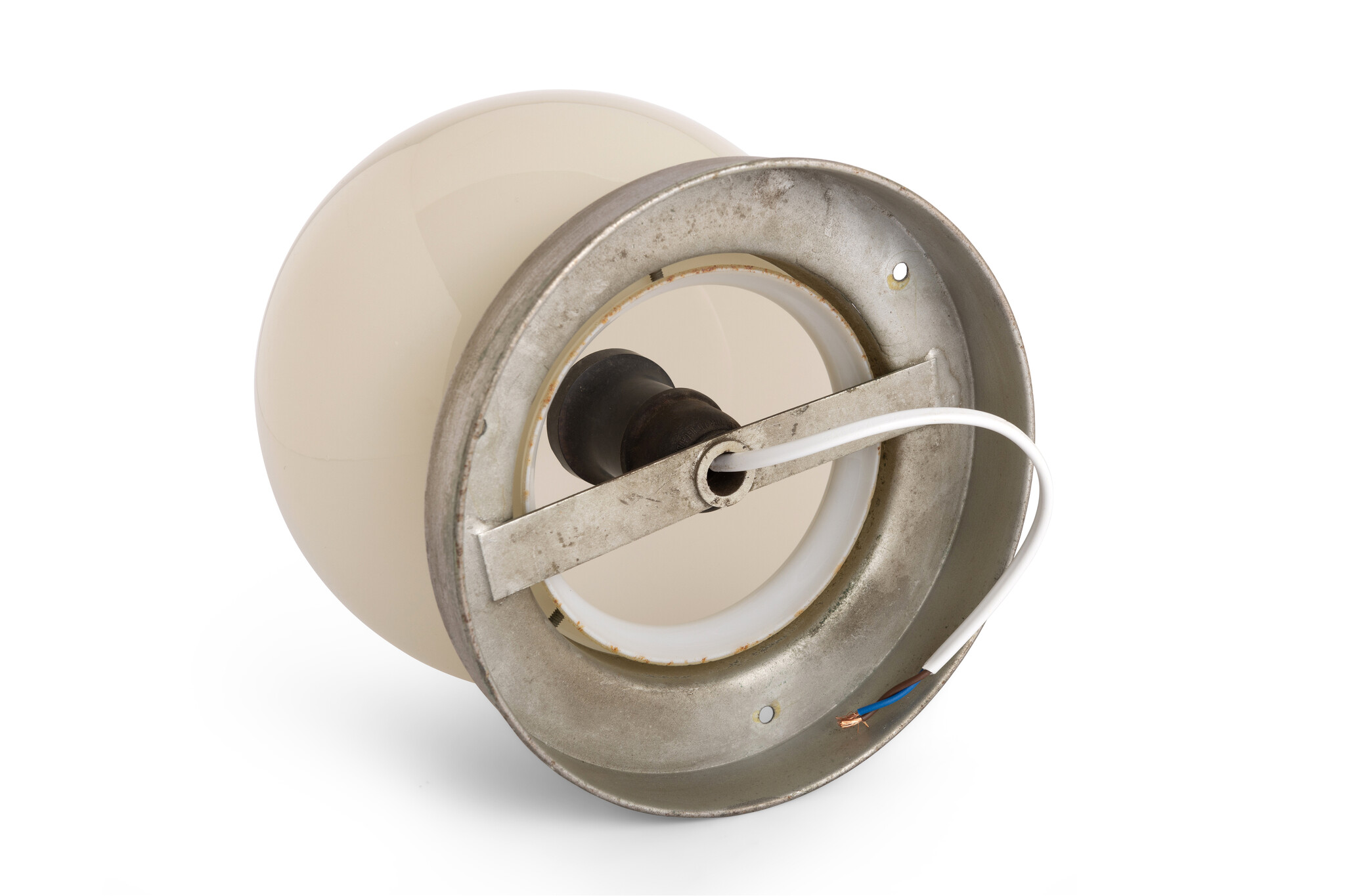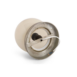 Oude plafondlamp, vrij strak en minimalistisch qua vormgeving.