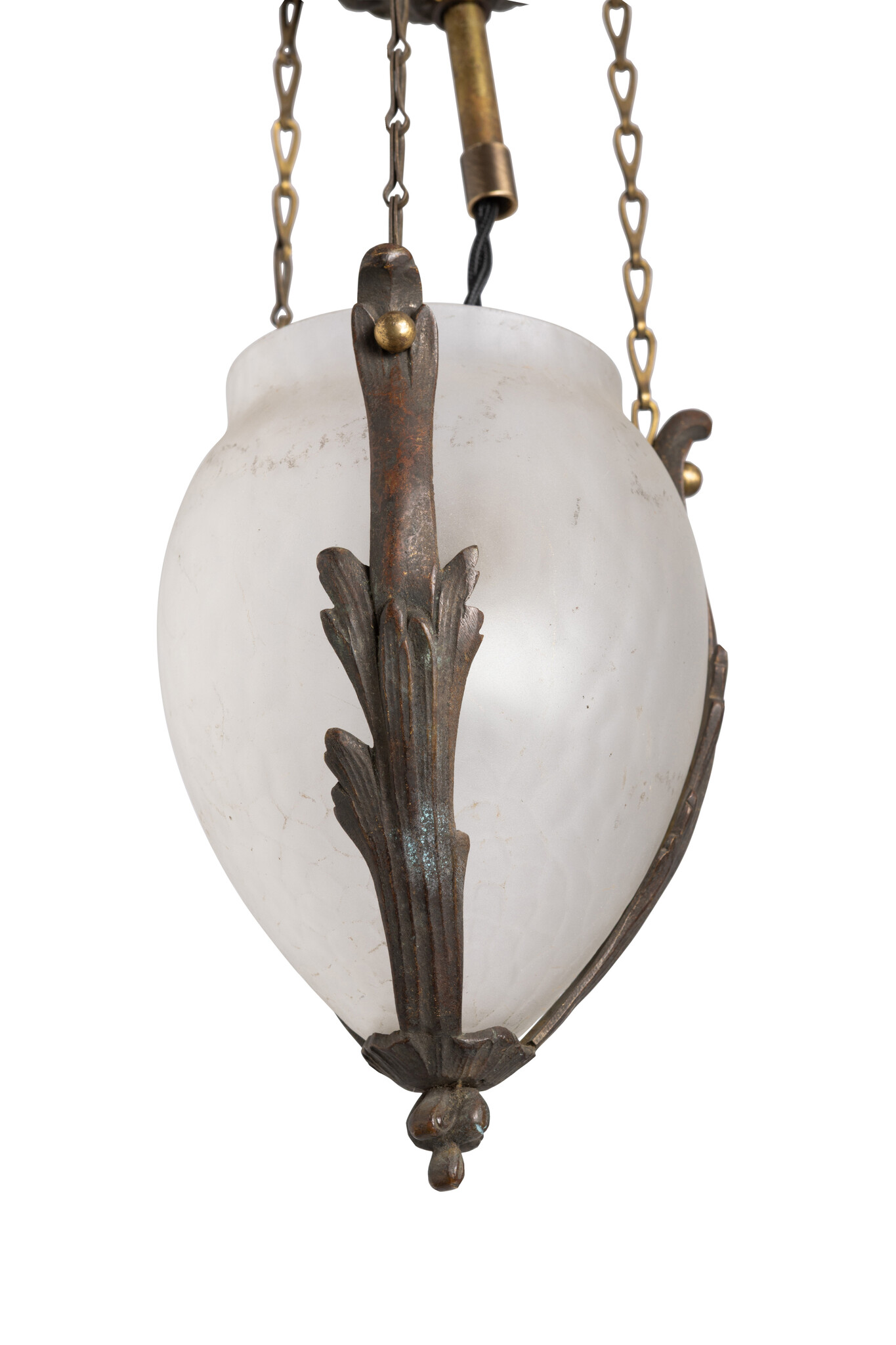 Klein oud hanglampje, vrij klassiek qua stijl.