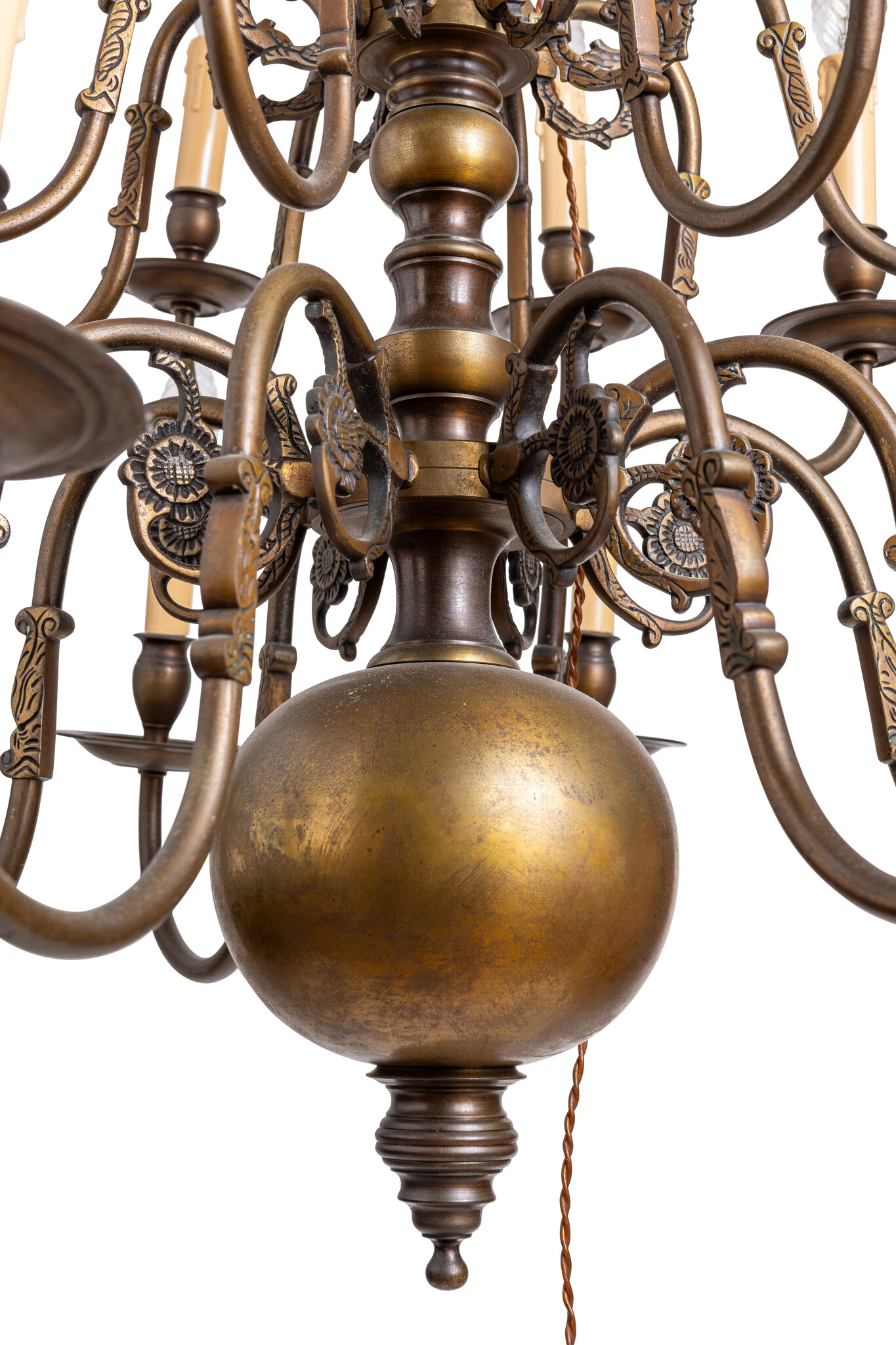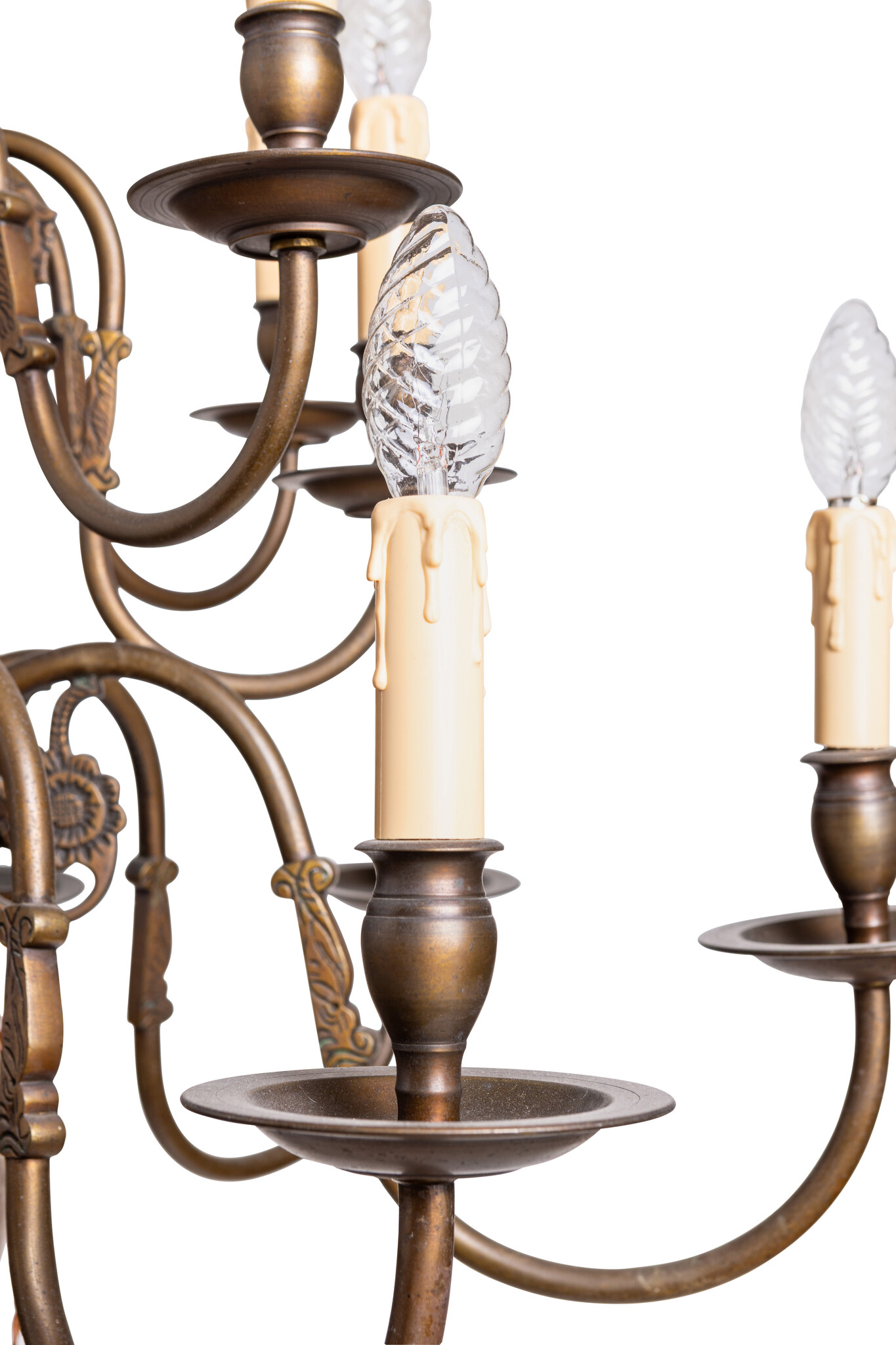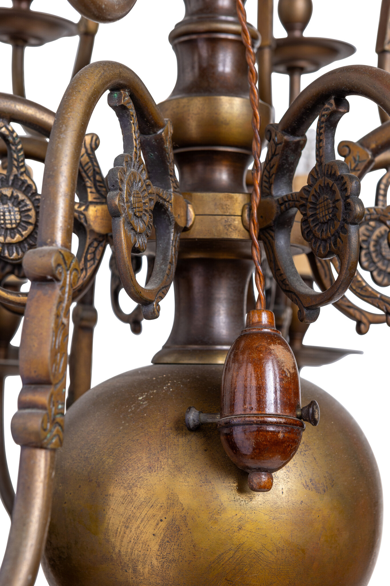 Bovenin een adelaar, daaronder een ring met salamanders (die je erin en eruit kunt haken; vroeger was er echt aandacht voor hoe dingen gemaakt werden, dat kun je ook bij deze lamp echt zien).