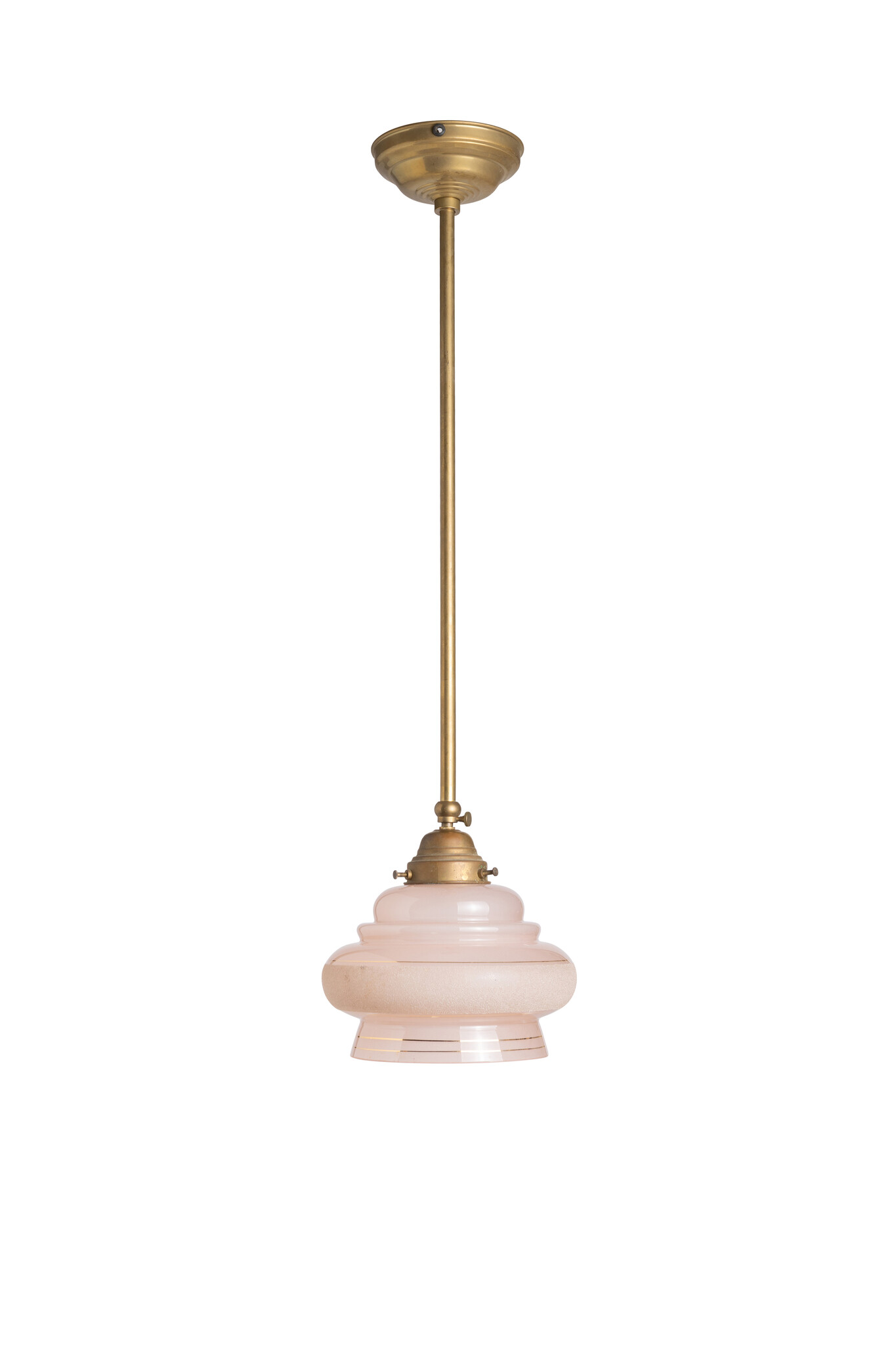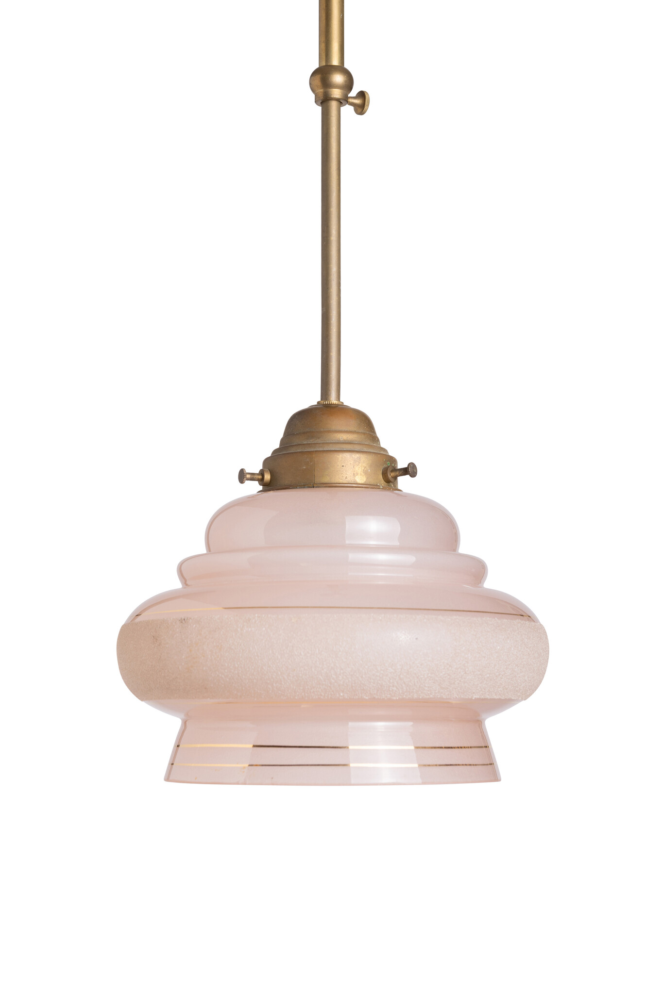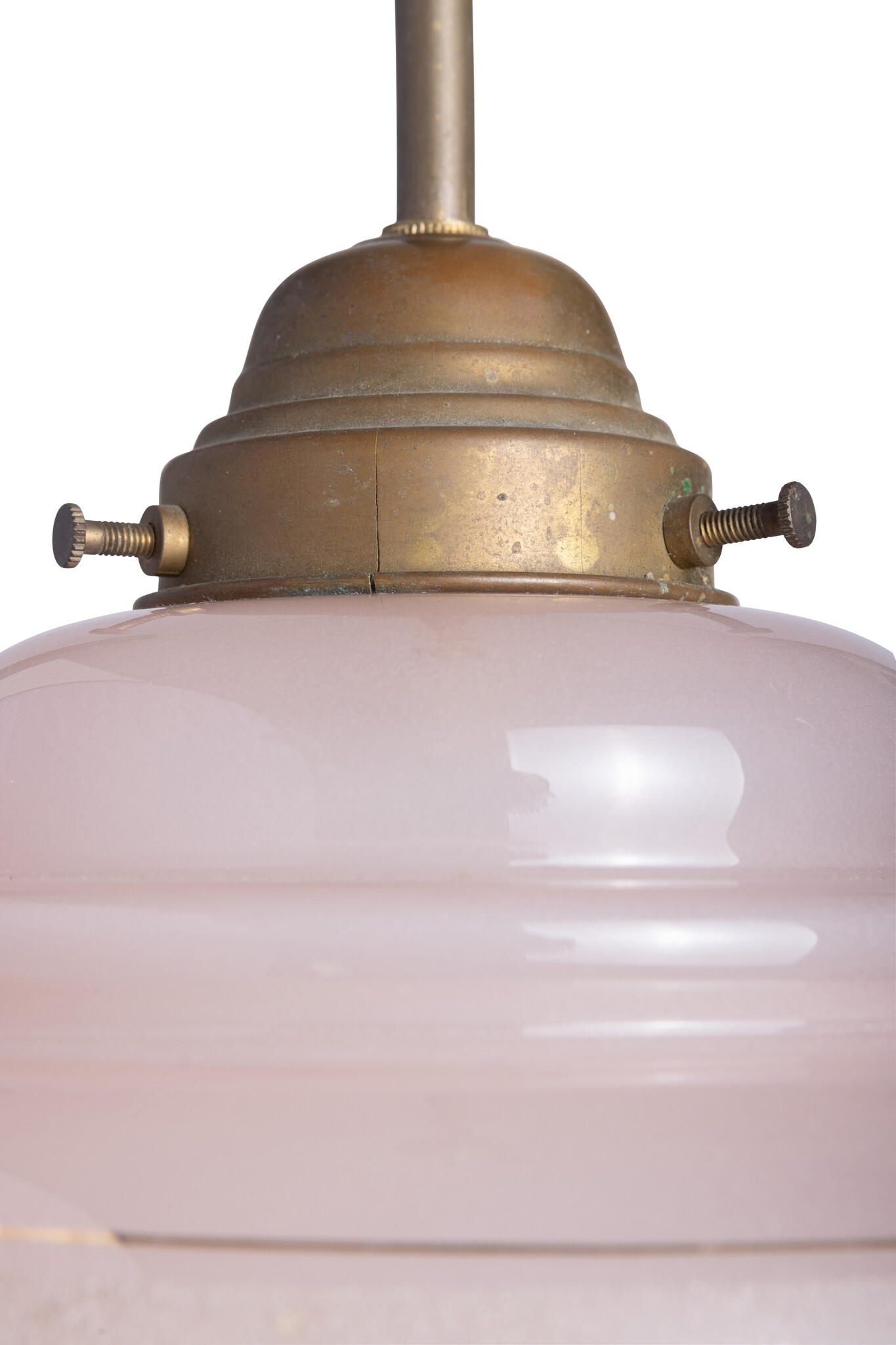 En een mooie roze glazen lampenkap, met goudkleurige biezen.