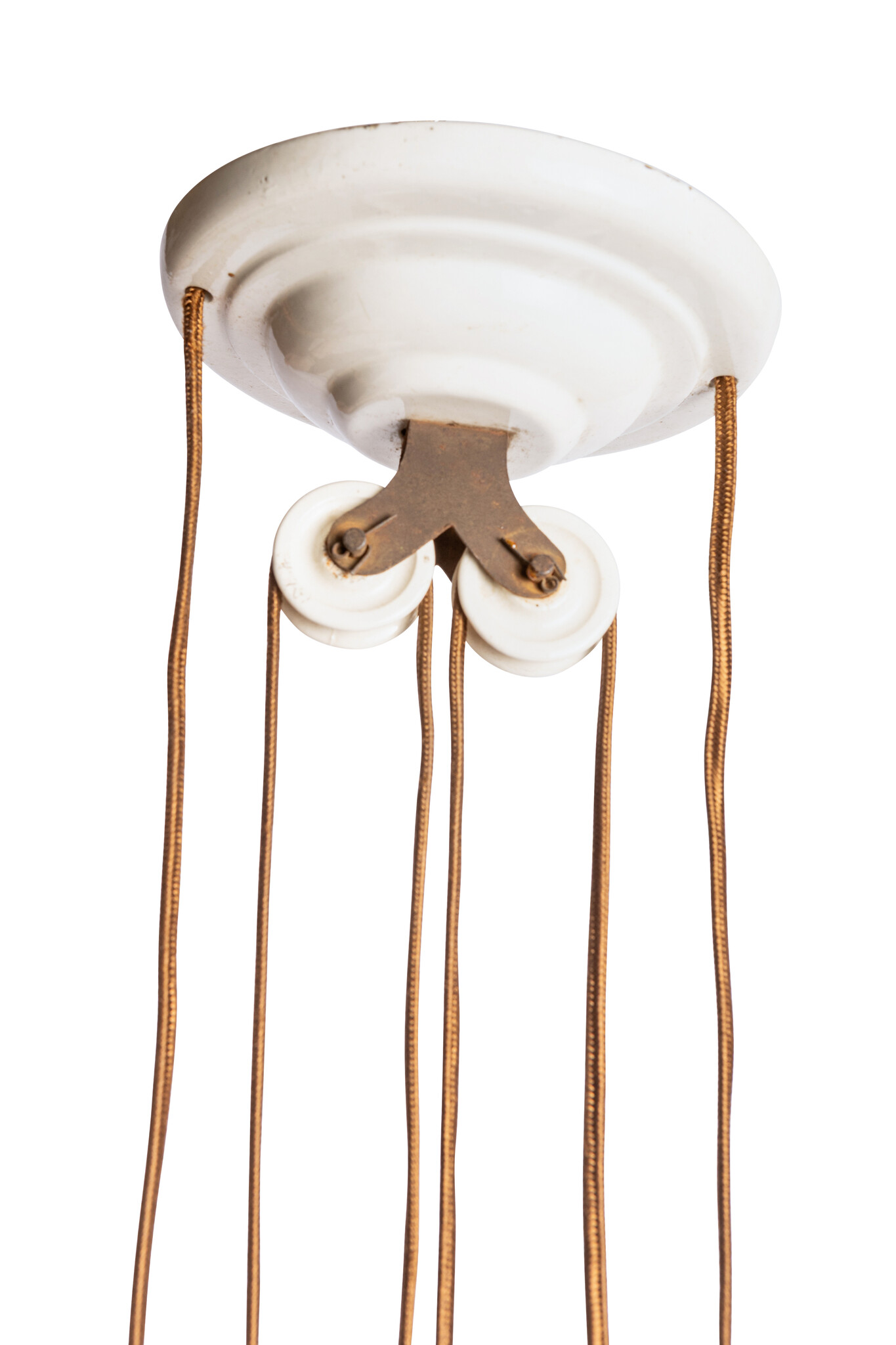 De plafondkap van porselein wordt rechtstreeks aan het plafond bevestigd en is niet hoger of lager te stellen.