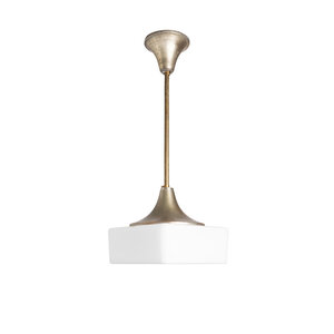 Een vierkante (mat witte) glazen kap, dicht aan de onderkant.