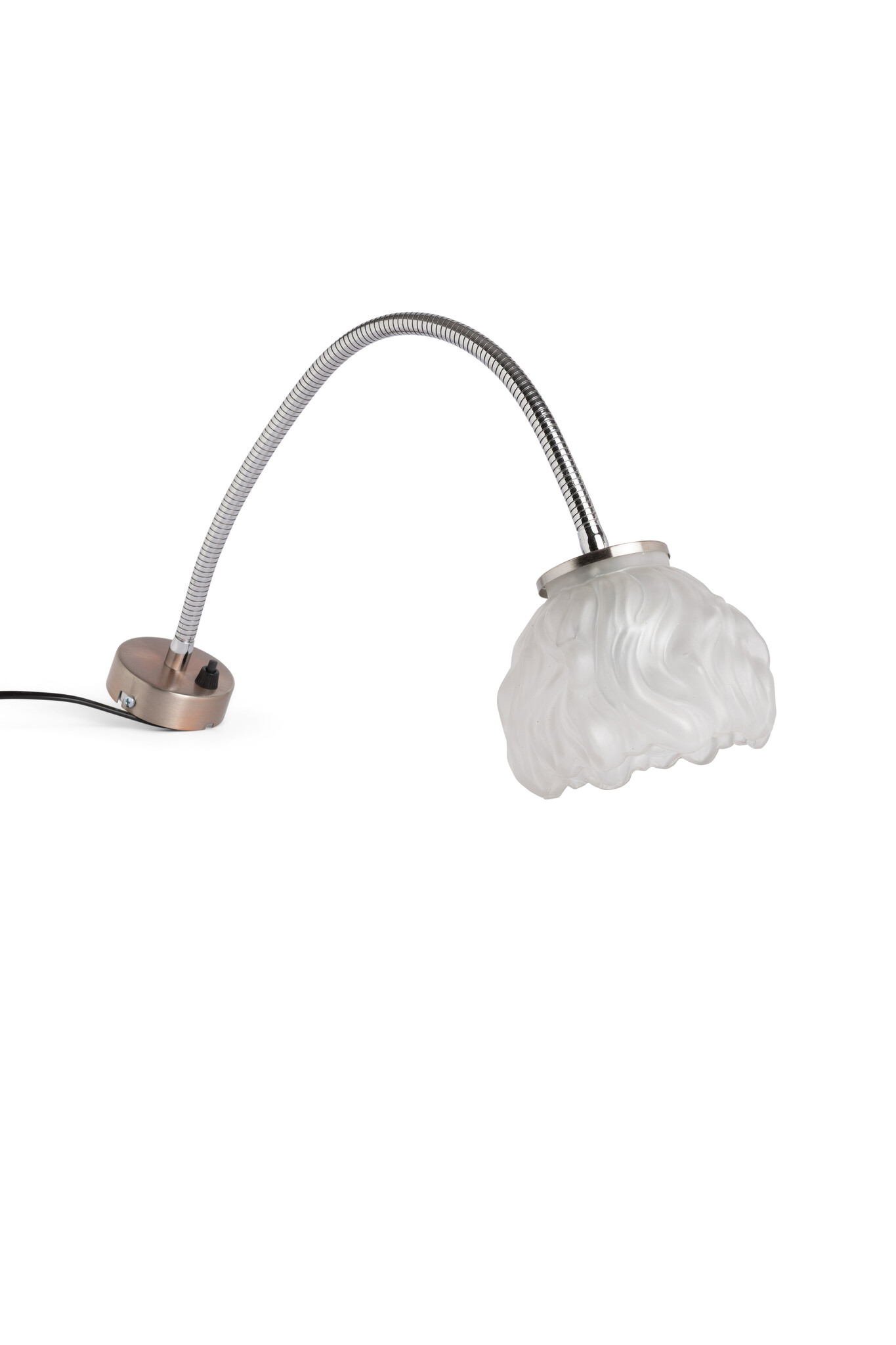 De matglazen lampenkap heeft een soort golvend patroon.