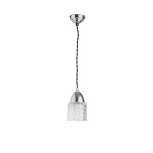 Glazen kapje hangt aan zwart gedraaid stoffen snoer.