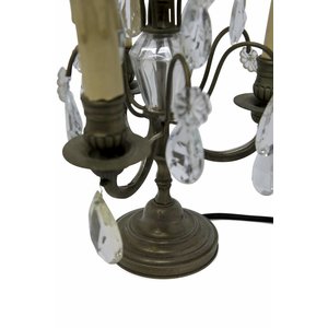 Dit lampje kwam bij ons binnen en was zeer zielig. Nog maar de helft van haar glaswerk was aanwezig en sommige zeer kleine knopjes ontbraken in zijn geheel.