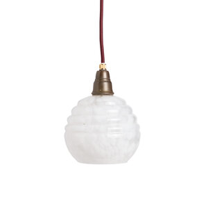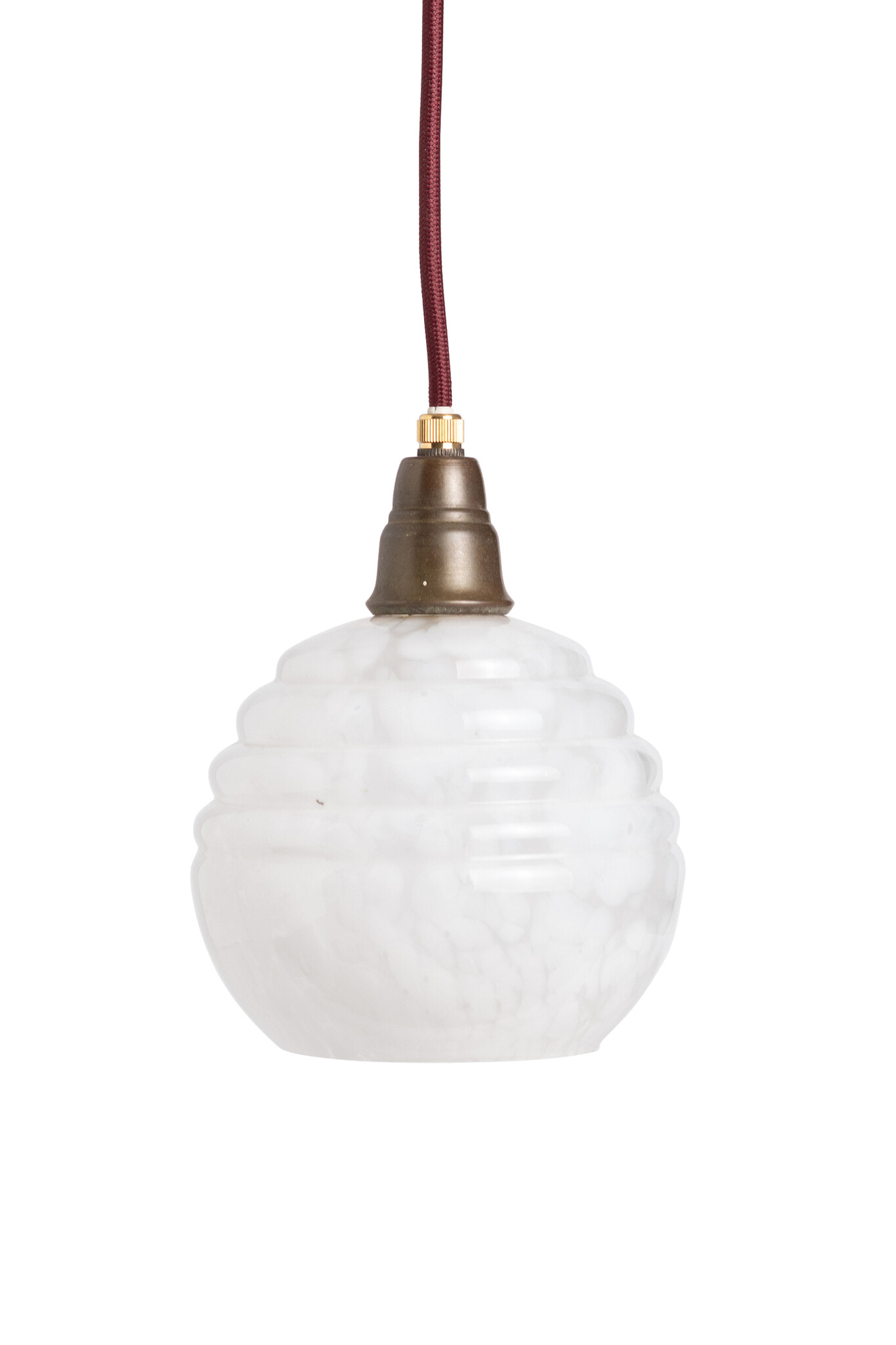 Een wit gewolkt glazen bolletje, open aan de onderzijde.