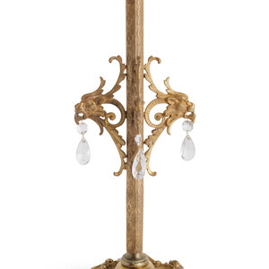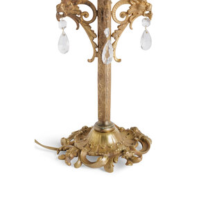 Het frame is gemaakt van goudkleurig koper en versierd met sierlijke krullen en kralen.