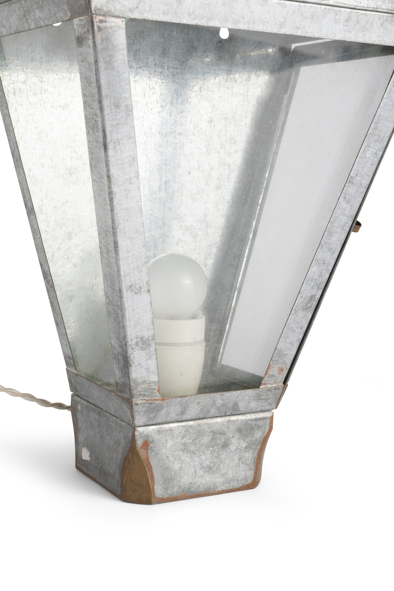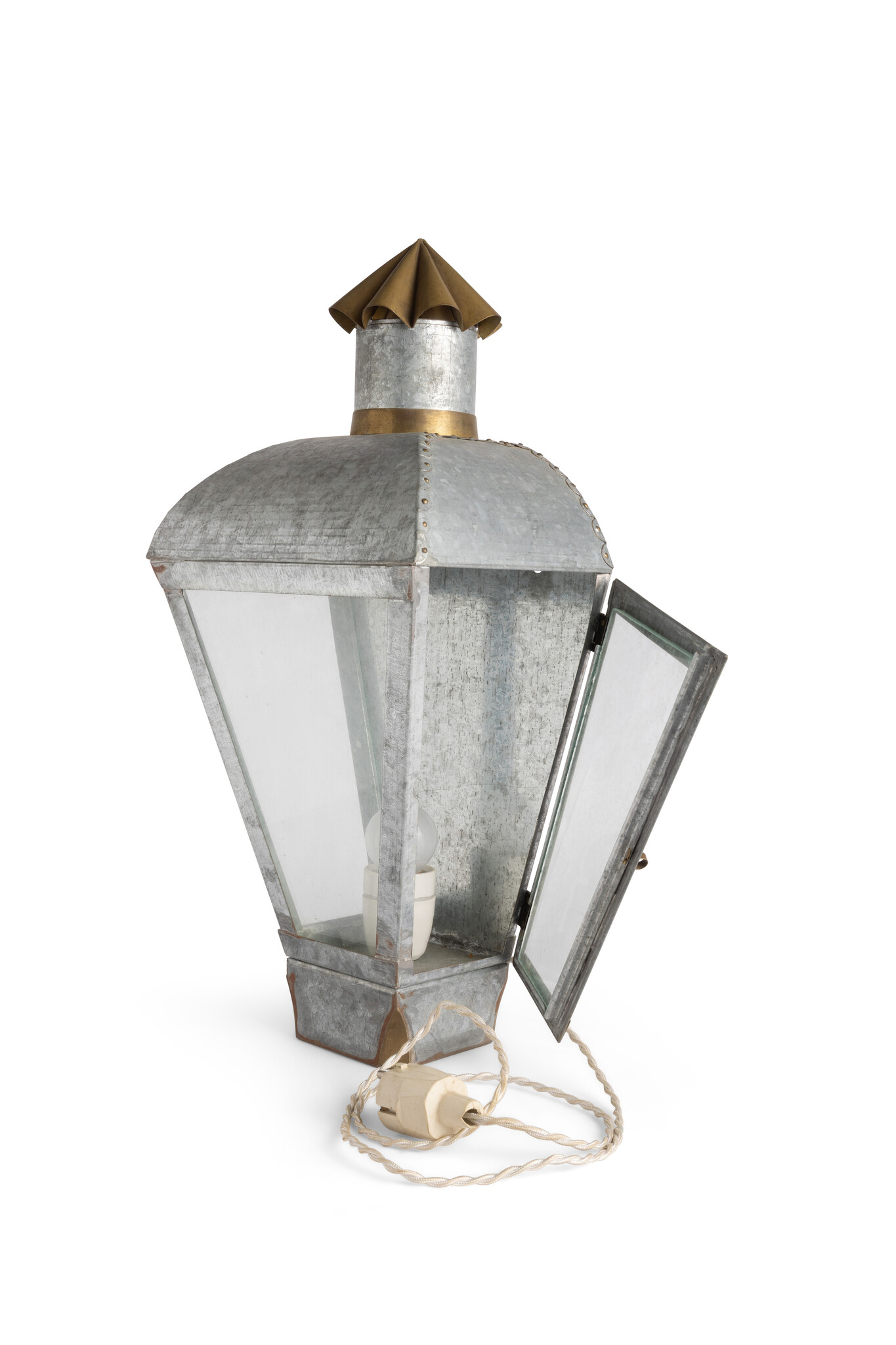 Vrij klassieke wandlamp, in de vorm van een metalen lantaarn.
