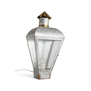 Vrij klassieke wandlamp, in de vorm van een metalen lantaarn.
