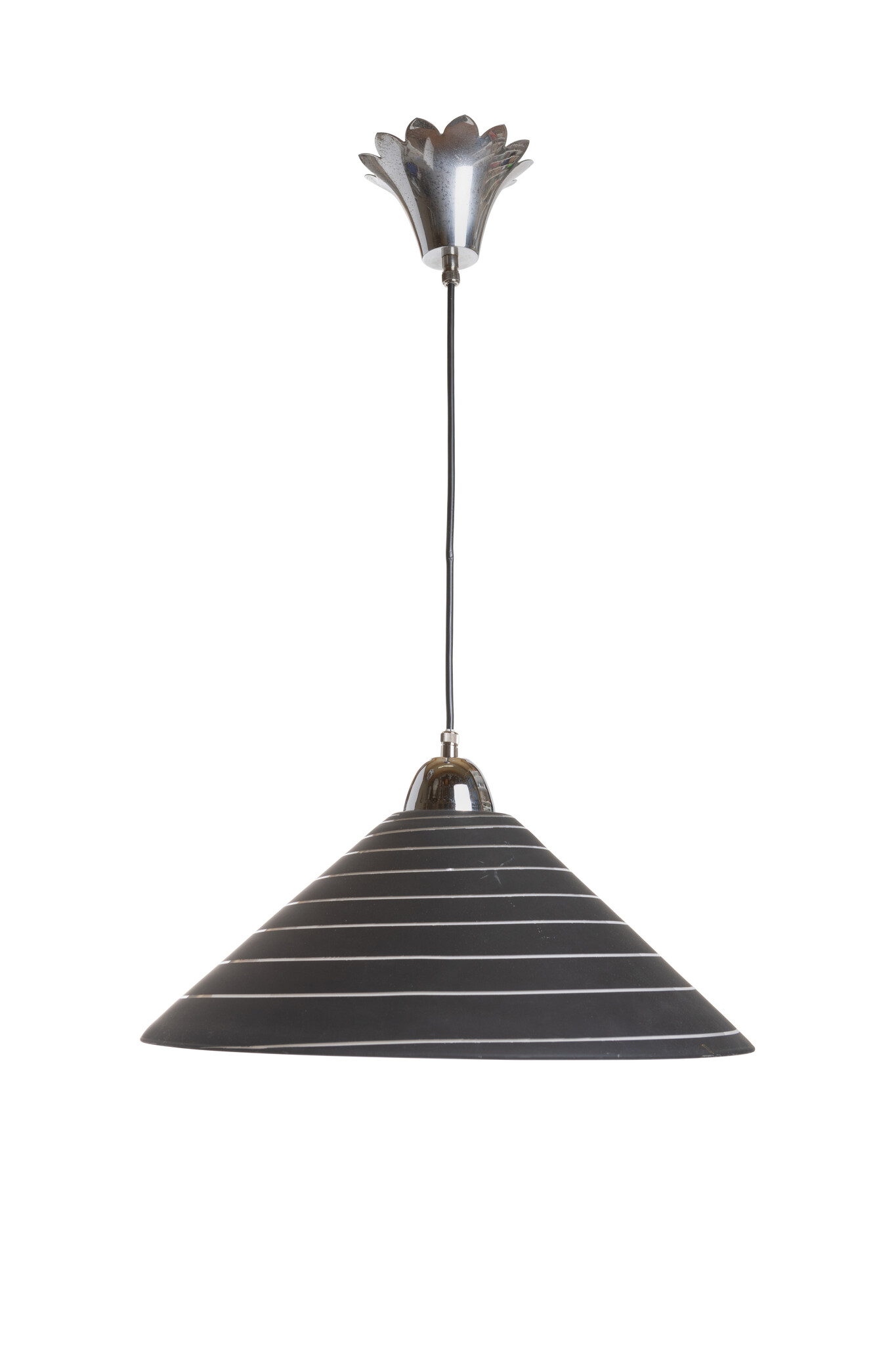 Zwart glazen hanglamp. Jaren 70 ongeveer.